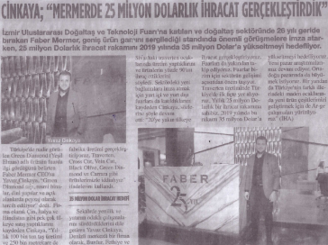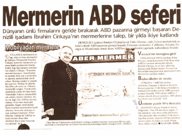 Cinkaya Group, Yönetim Kurulu Başkanı İbrahim Cinkaya’nın liderliğiyle, doğal taş sektörünün küresel aktörleri arasında öne çıkarak ABD pazarına giriş yapmıştır. Özellikle travertene yönelik artan talepler doğrultusunda, Faber Mermer’in ABD’deki satış hacmi bir yıl içerisinde iki katına ulaşmıştır.